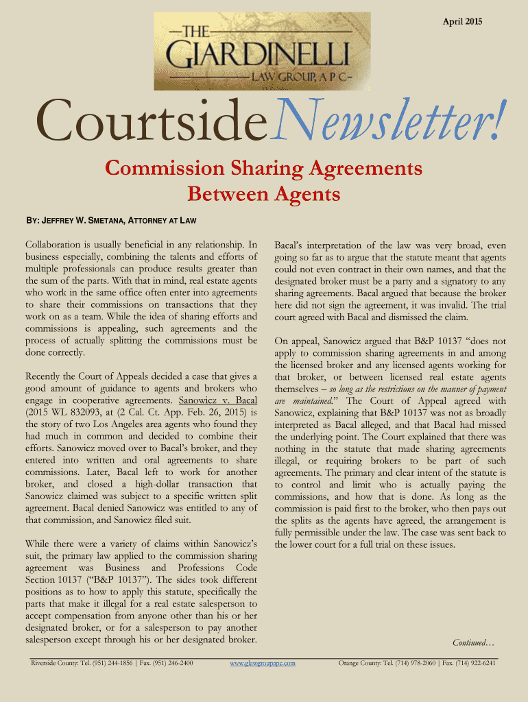 Get the free Commission Sharing Agreements