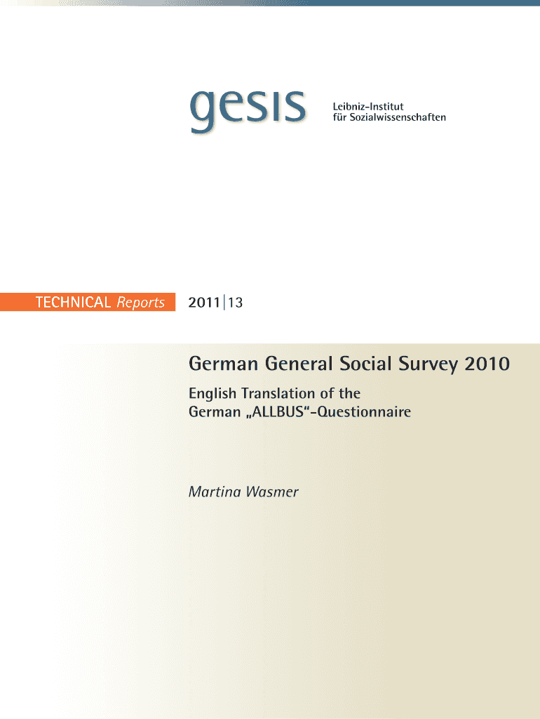 TECHNICAL Reports 2011 13 German General Social Survey 2010 English Translation of the German ALBUS -Questionnaire Martina Warmer k OK l OK GESIS-Technical Reports 2011 13 German General Social Survey