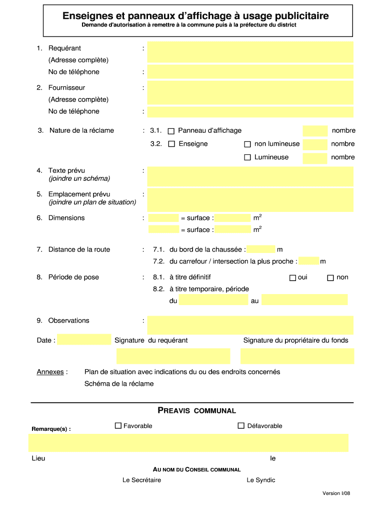 Engage set bandeaux daffichage usage publicitaire Demanded 'authorization resettle la commune pews la prefecture Du district 1. Return : (Address complete) No de phone 2. Fournier : : (Address complete)