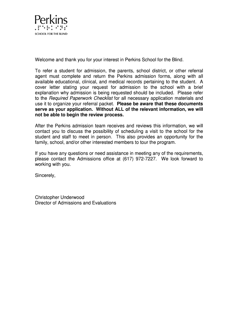 Welcome and thank you for your interest in Perkins School for the Blind.