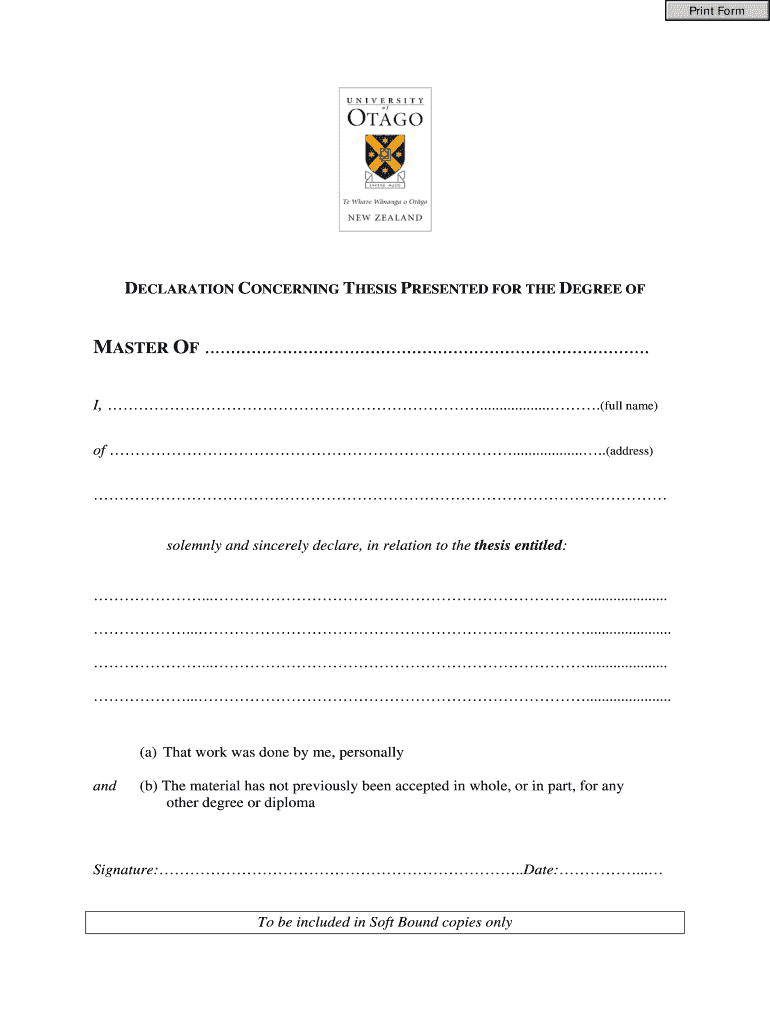 Get the free Thesis Declaration Form