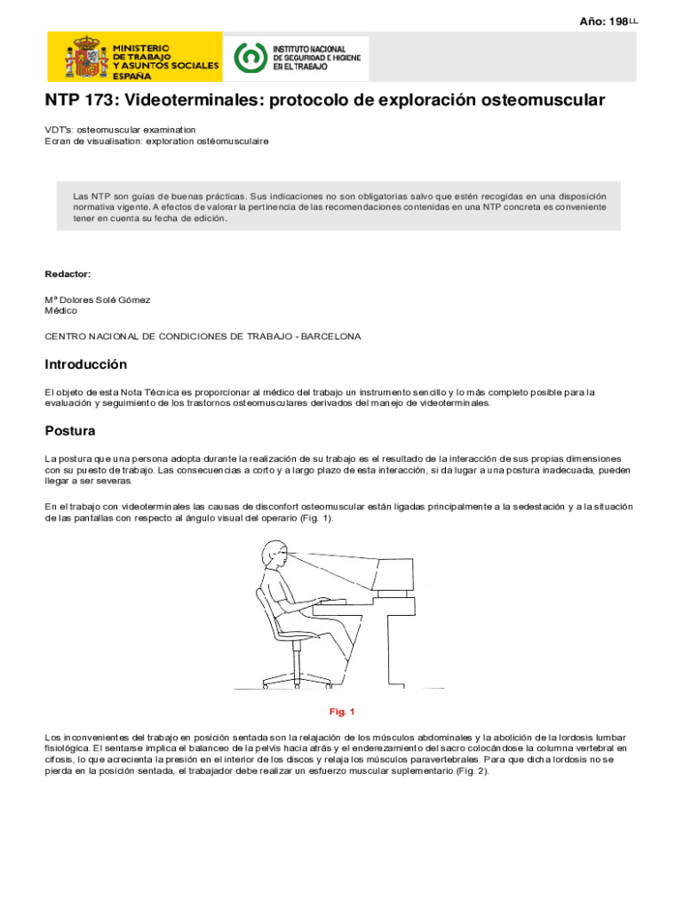 AO: 198NTP 173: Videoterminales: protocol ode exploration osteomuscular