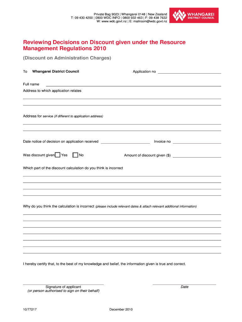 How to fill out Reviewing Decisions on Discount given under the Resource Management Regulations 2010
