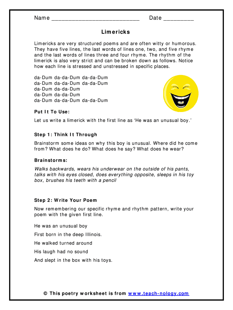 Teachers, educators, and anyone interested in teaching limericks may utilize the resources on limericks - teach-nologycom.