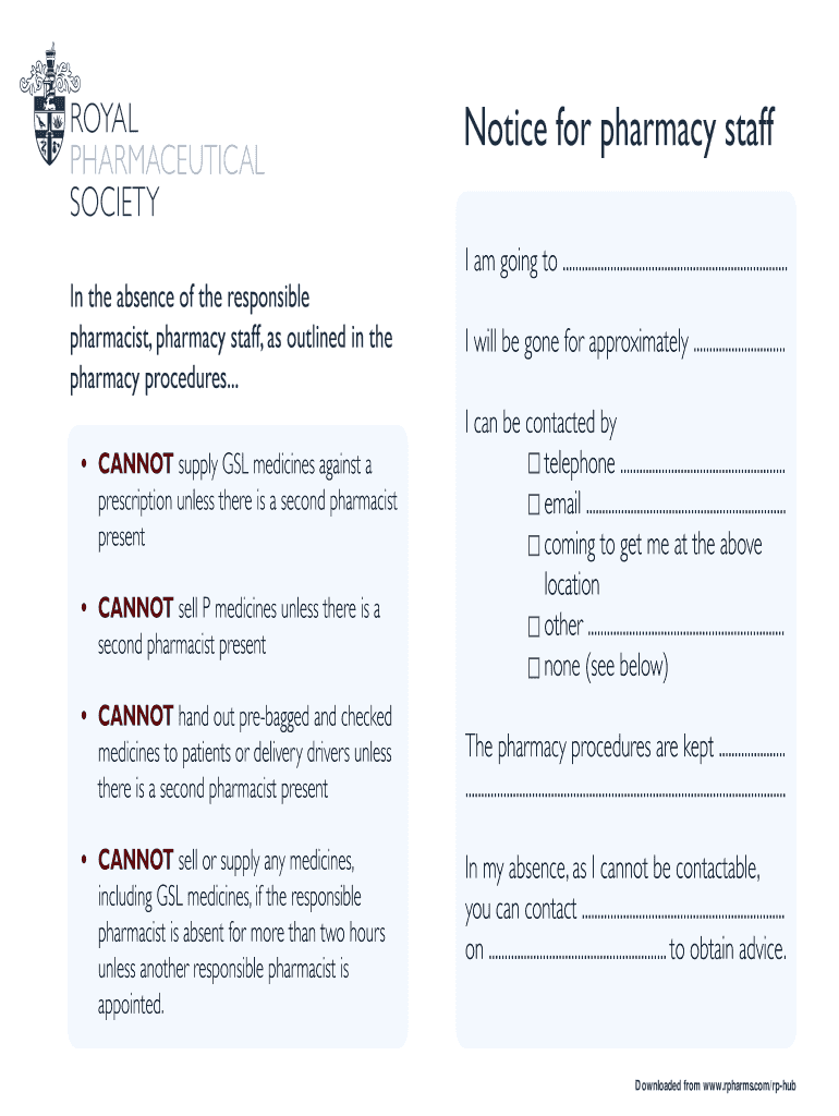 Get the free Notice for pharmacy staff - Royal Pharmaceutical Society