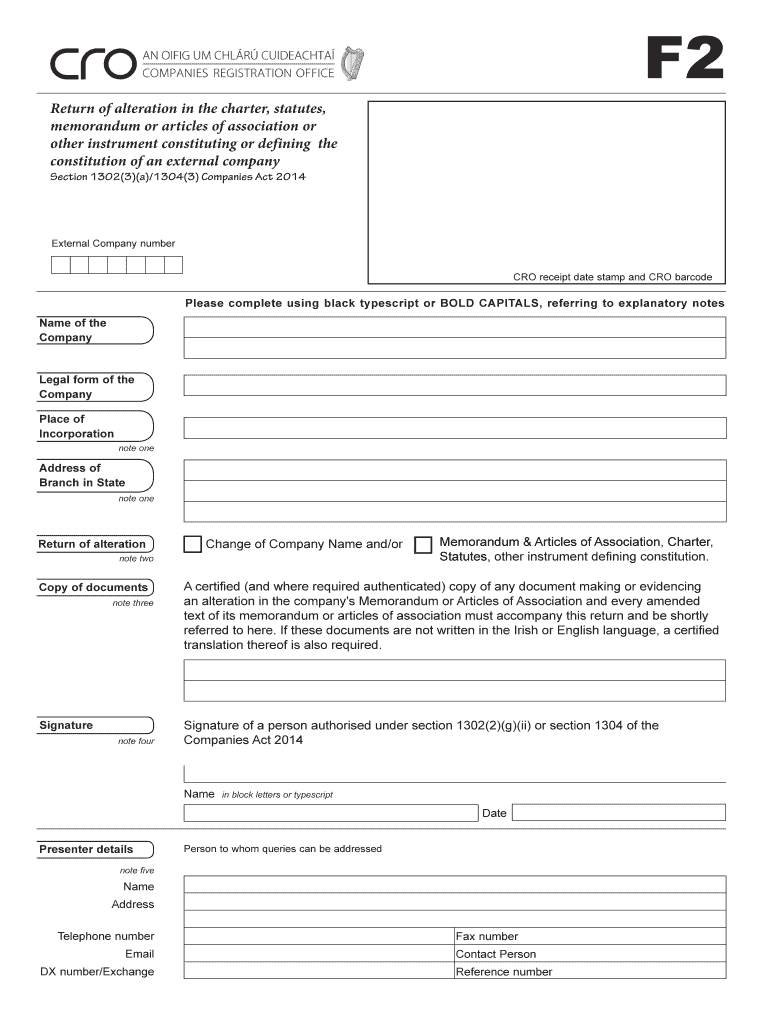 Get the free F2- return of alteration in charter statutes M&