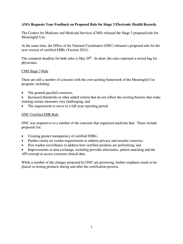AMA Requests Your Feedback on Proposed Rule for Stage 3 Electronic Health Records.