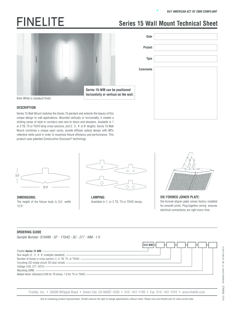 Get the free BUY AMERICAN ACT OF 2009 COMPLIANT FINELITE Series 15 Wall Mount Technical Sheet Dat...