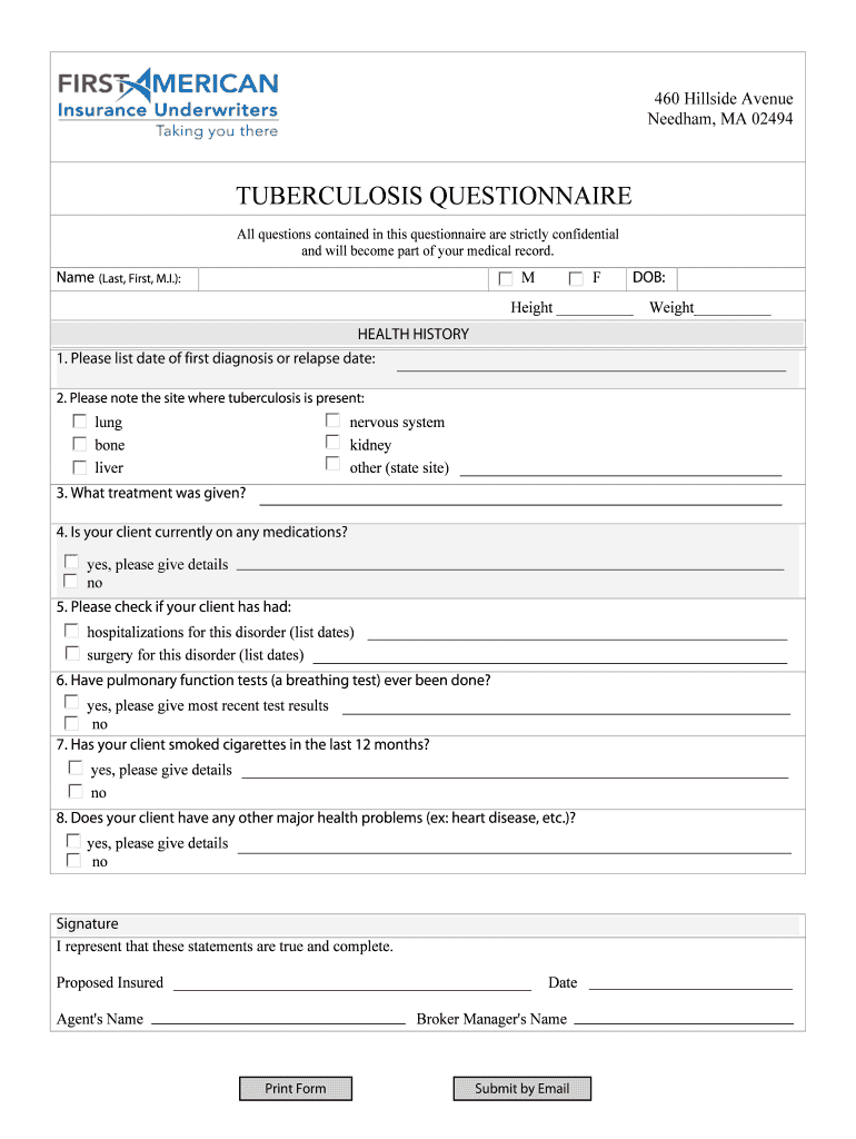 Tuberculosis Questionnaire - Faiu is not the form you're looking for?Search for another form here.