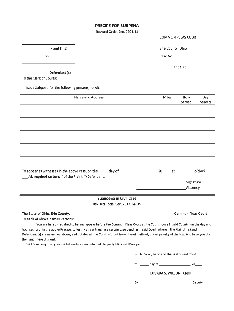 Get the free Redoing Precipe for Subpena - eriecountyohgov