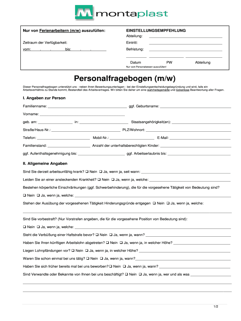 Our on Ferienarbeitern (m/w) auszufllen: Latham her Verfgbarkeit: com:. . Bis:. . EINSTELLUNGSEMPFEHLUNG Abseiling: District: Befitting: Datum PW Abseiling Our com Personalwesen auszufllen! Personalfragebogen