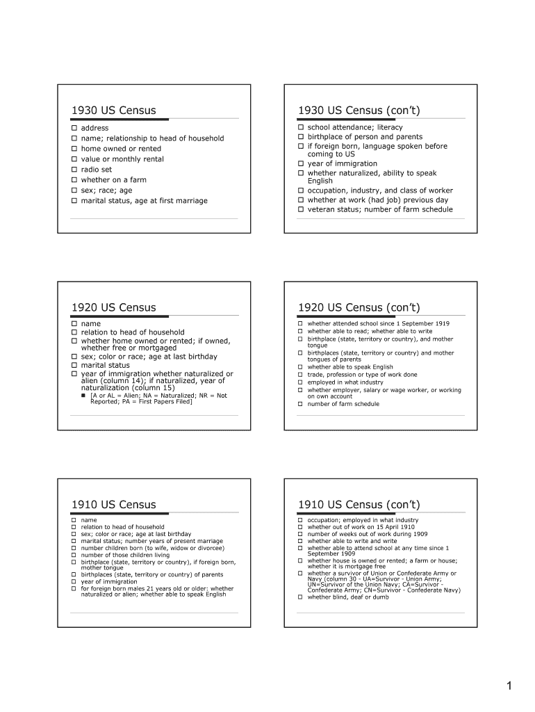 1930 US Census address name; relationship to head of household home owned or rented value or monthly rental radio set whether on a farm sex; race; age marital status, age at first marriage1920 US
