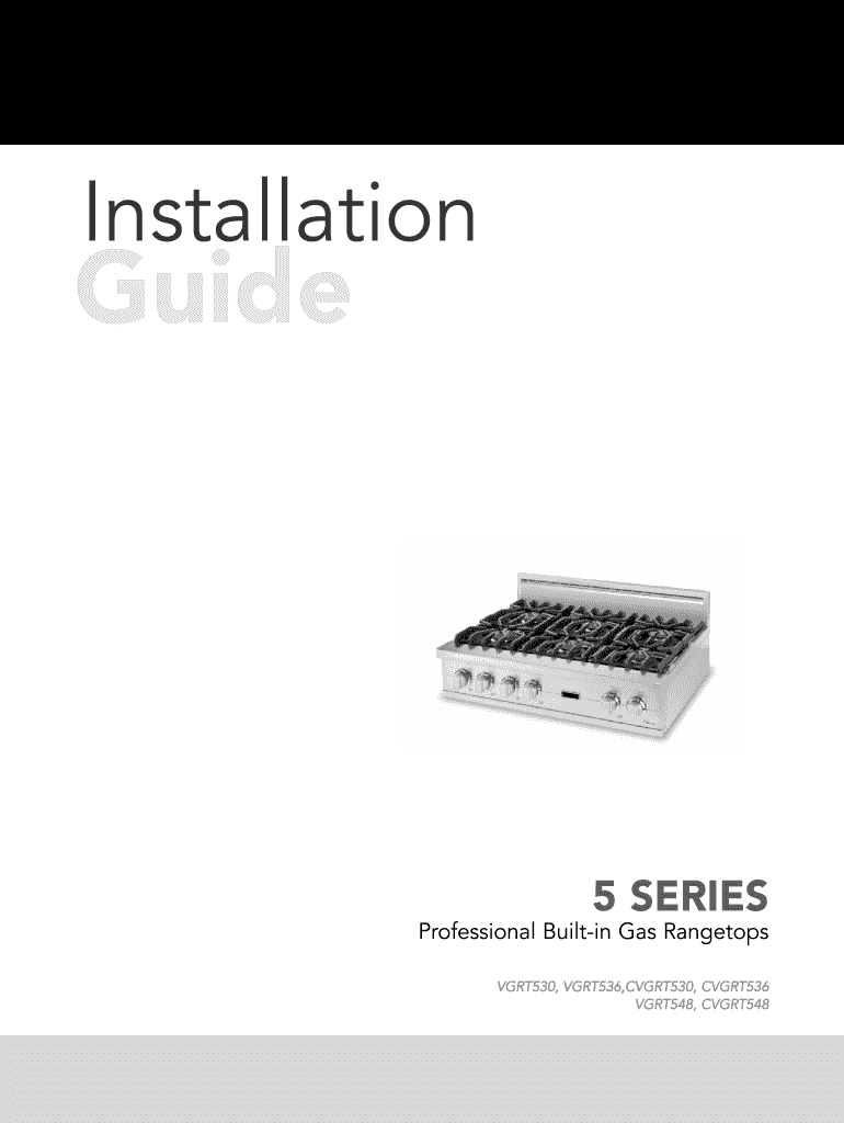 Installation Professional Builtin Gas Range tops VGRT530, VGRT536,CVGRT530, CVGRT536 VGRT548, CVGRT548 Table of Contents Warnings & Important Safety Information 3 Dimensions (30 & 36) 4 Specifications