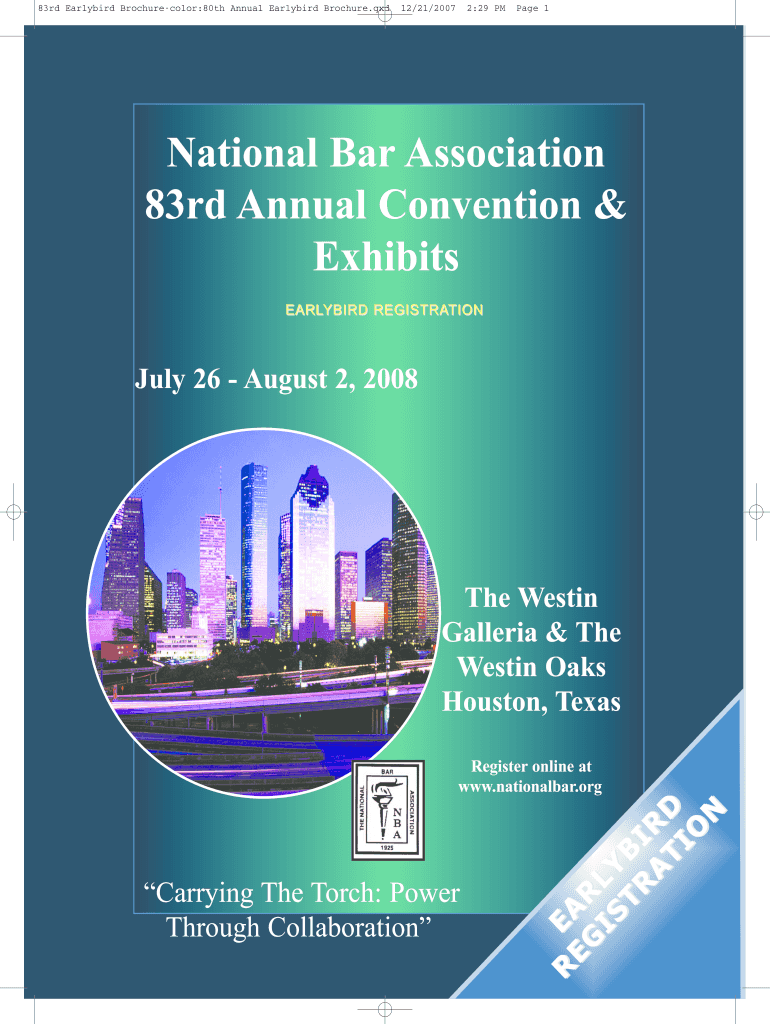 83rd Early bird Brochure color:80th Annual Early bird Brochure. QED 12/21/2007 2:29 PM Page 1 National Bar Association 83rd Annual Convention & Exhibits LADYBIRD REGISTRATION July 26 August 2, 2008,