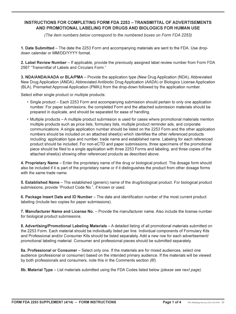 Get the free INSTRUCTIONS FOR COMPLETING FORM FDA 2253 TRANSMITTAL OF ADVERTISEMENTS AND PROMOTIO...