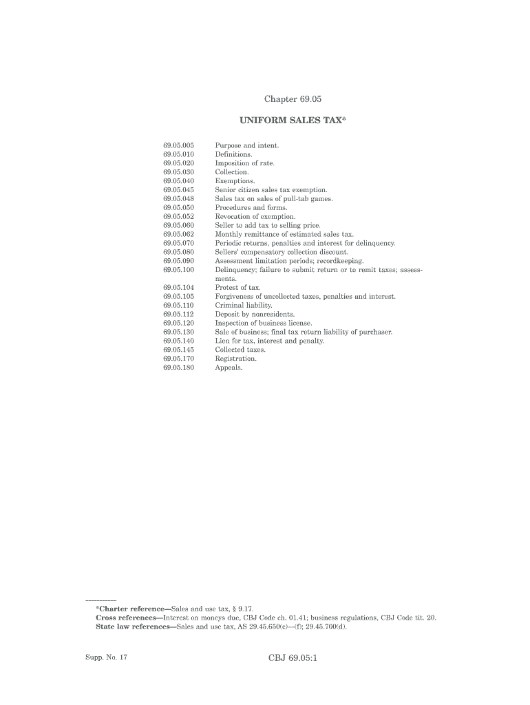 This document outlines the regulations, impositions, exemptions, and procedures related to the sales tax within the City and Borough, including definitions of terms, rates, collection methods, and