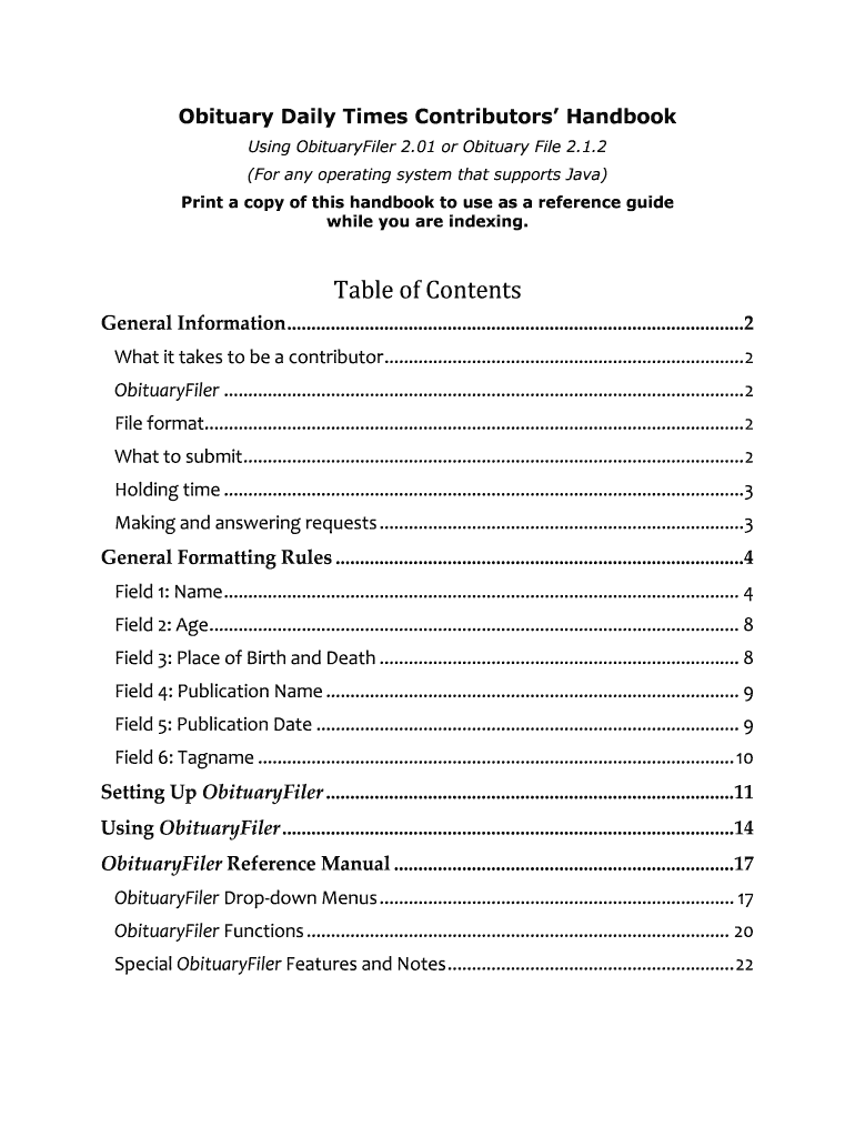 Using ObituaryFiler 2.01 or Obituary File 2.1.2