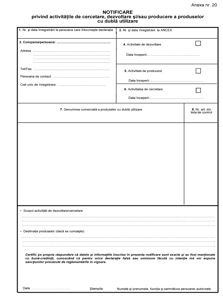 Get the free NOTIFICARE privind activitile de cercetare dezvoltare