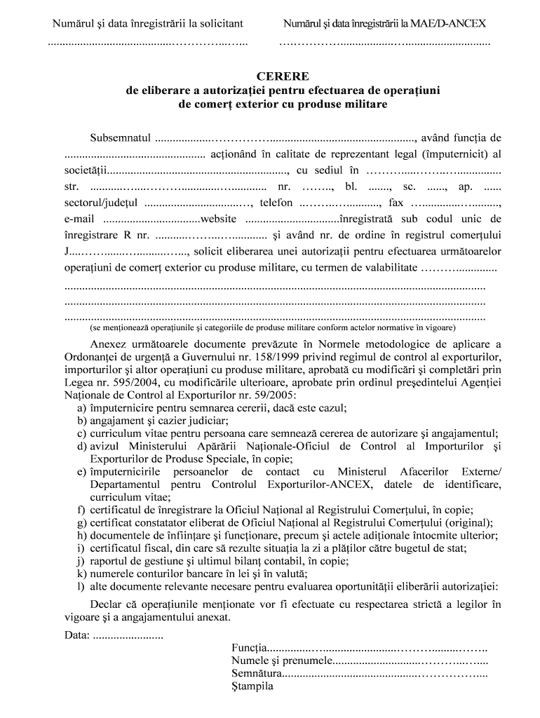 Numeral i data nregistrrii la solicit ant Numeral i data nregistrrii la MAE/DANCE ................................................ ................................................ SEVERE DE deliberate