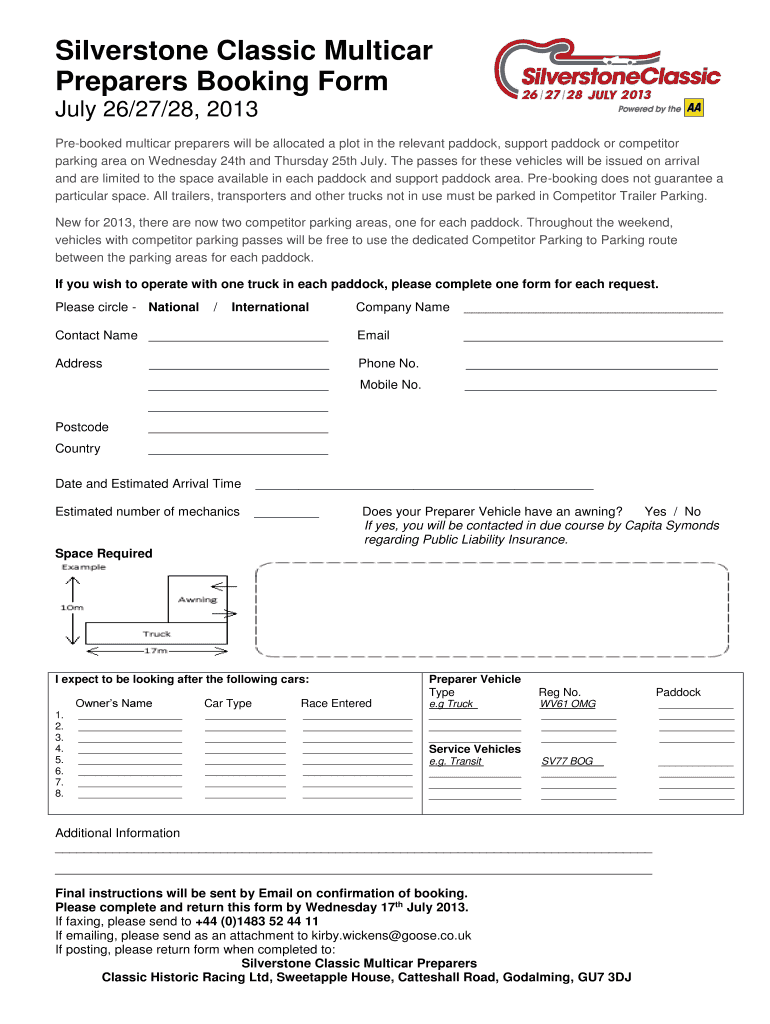 Get the free Silverstone Classic Multicar Preparers Booking Form - FJHRA