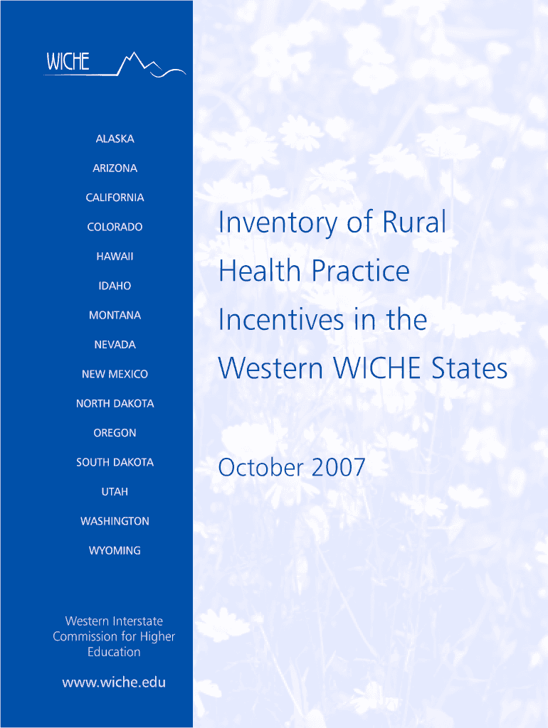 ALASKA ARIZONA CALIFORNIA COLORADO HAWAII IDAHO MONTANA NEVADA NEW MEXICO Inventory of Rural Health Practice Incentives in the Western NICHE States NORTH DAKOTA OREGON SOUTH DAKOTA UTAH WASHINGTON