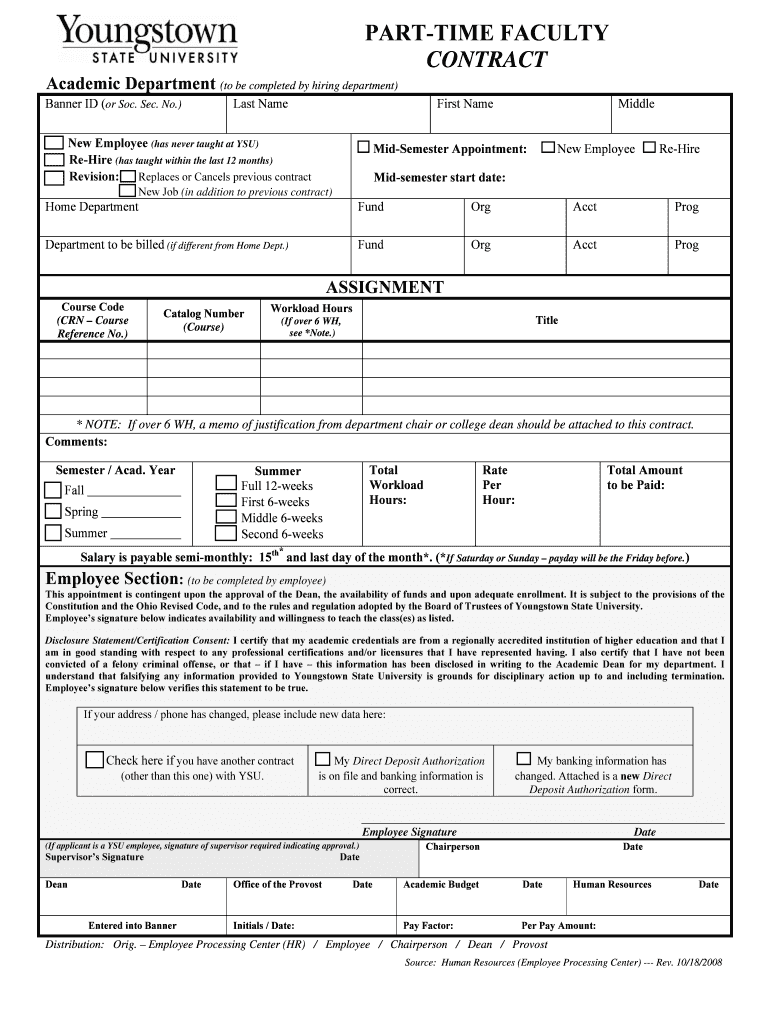 Get the free PART-TIME FACULTY CONTRACT - stemysuedu - stem ysu