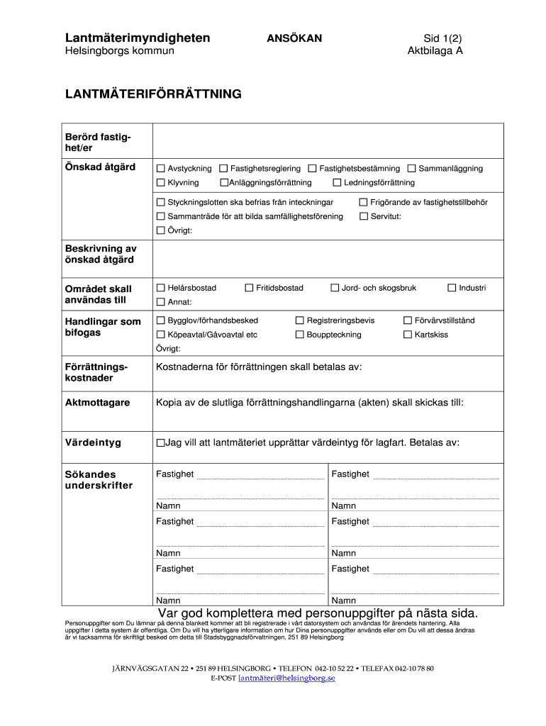 Lantmterimyndigheten ANSHAN Sid 1(2) Aktbilaga A Helsingborg common LANTMTERIFRRTTNING Berry fatigue/er asked GRD Avstyckning Fastighetsreglering Fastighetsbestmning Living Anlggningsfrrttning Sammanlggning