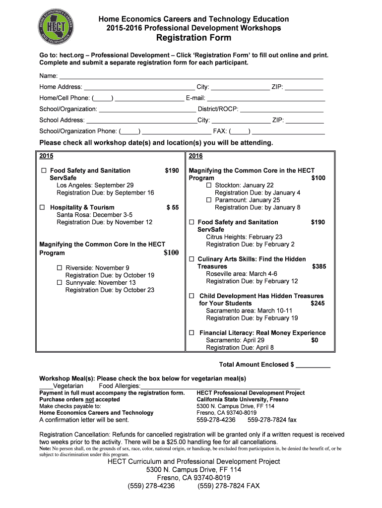 Home Economics Careers and Technology Education 2015-2016 Professional Development Workshops Registration Form Go to: heat.org Professional Development Click Registration Form to fill out online and