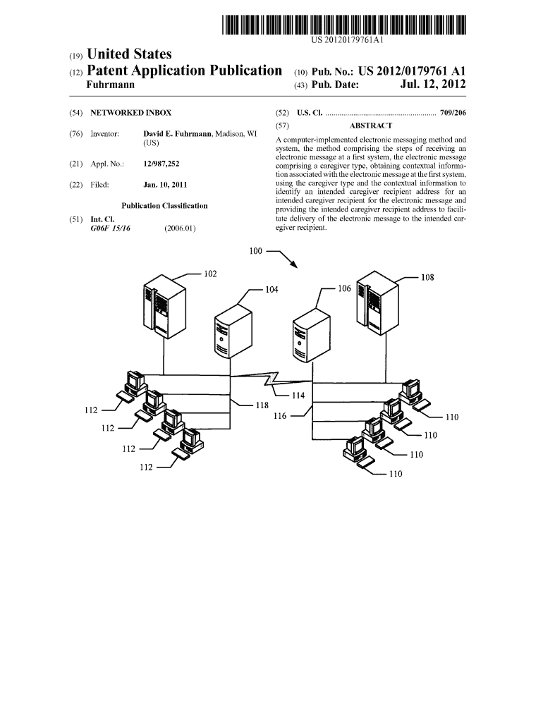 US 20120179761Al (19) United States (12) Patent Application Publication (10) Pub. No.: US 2012/0179761 A1 (43) Pub. Date: Furman (54) NETWORKED INBOX (76) Inventor: (52) David E. Furman, Madison,