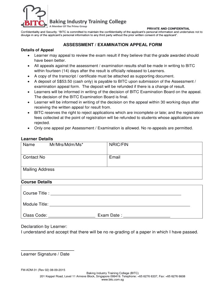 Individuals who believe that their assessment examination results are incorrect or unfair are required to file an appeal form.