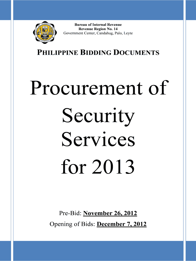 Bureau of Internal Revenue Region No. 14 Government Center, Canoeing, Pale, Late PHILIPPINE BIDDING DOCUMENTS Procurement of Security Services for 2013 PreBid: November 26, 2012, Opening of Bids: