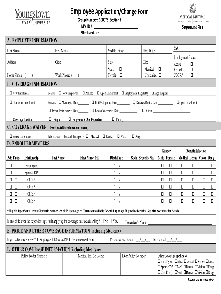 Get the free Employee ApplicationChange Form - bcmsysuedub - cms ysu