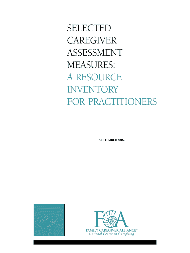 SELECTED CAREGIVER ASSESSMENT MEASURES: A RESOURCE INVENTORY FOR PRACTITIONERS SEPTEMBER 2002 Caregiver About Family Caregiver Alliance Founded in 1977, Family Caregiver Alliance serves as a public