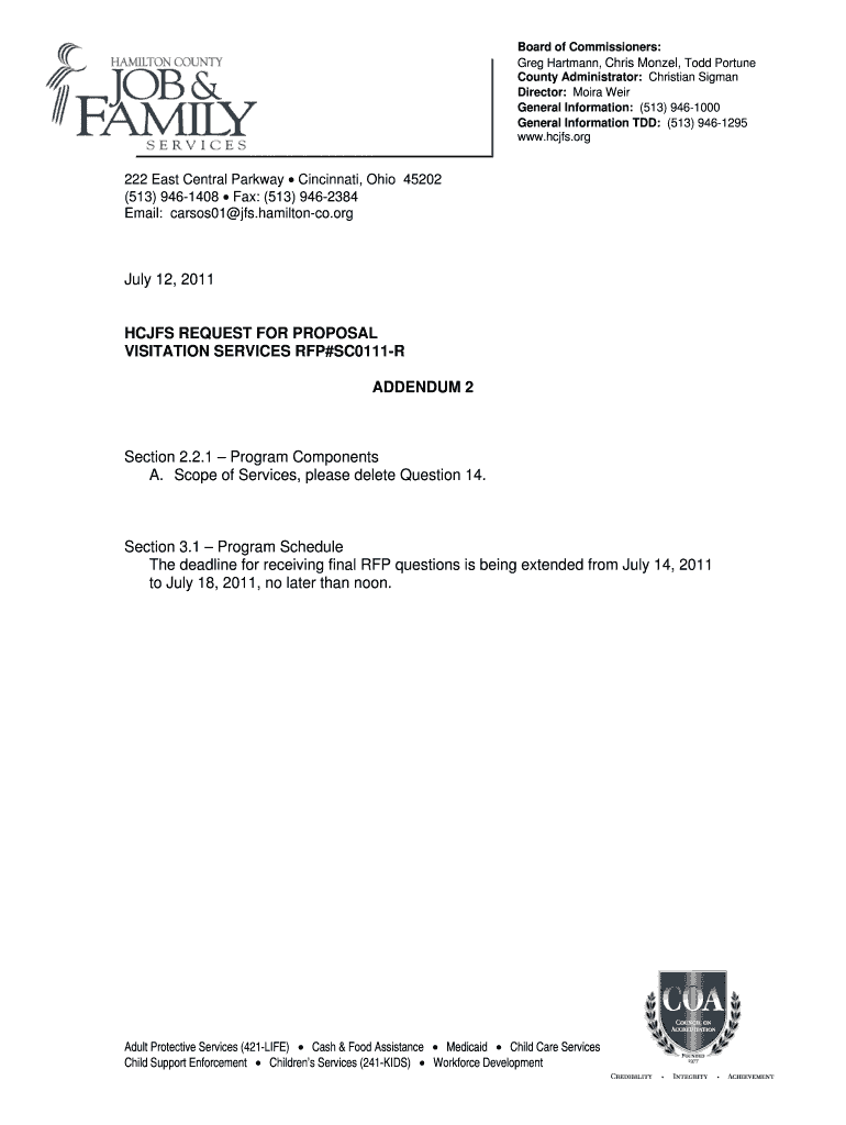 Get the free HCJFS REQUEST FOR PROPOSAL VISITATION SERVICES RFPSC0111-R