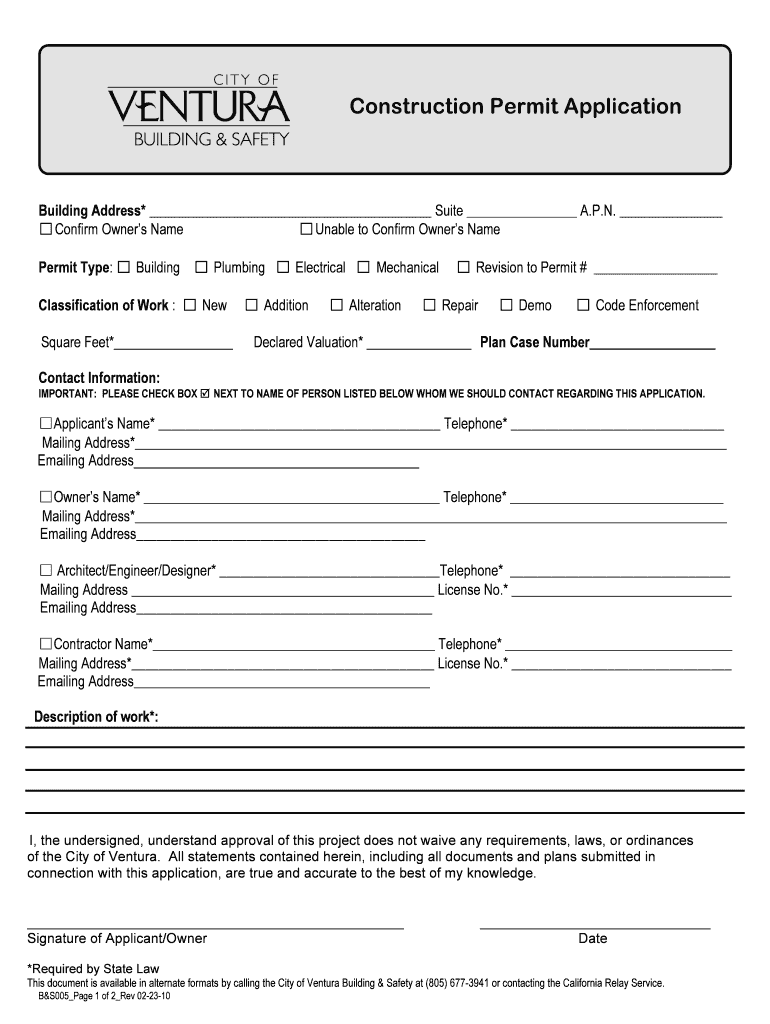 Submission of the Construction Permit Application may vary by locality. Generally, you may need to submit it electronically through your local government website or print and submit physically at the appropriate office.