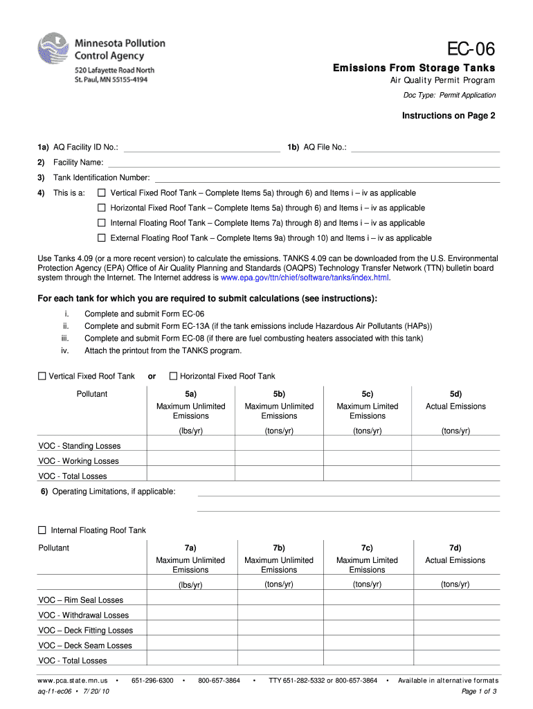 Get the free EC-06 Emissions From Storage Tanks - Air Quality Permit Program - Form. Form used to...