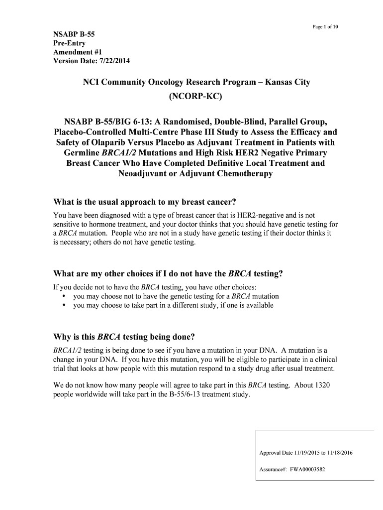 Get the free NSABP B-55 Consent for Pre-Entry for Initial submission clean copydocx - kccop