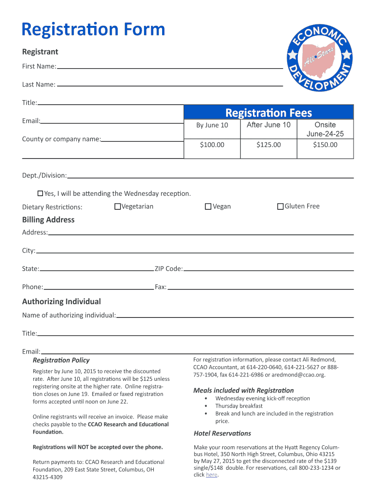 Registration Form E C NAOMI CO V Last Name: Title: T DE First Name: rs ta ls l A EN Registrant ELO P M Registration Fees Email: County or company name: By June 10 After June $$10100.00125.00 Onsite