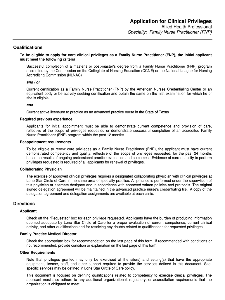 Get the free Application for Clinical Privileges Allied Health Professional - migrantclinician