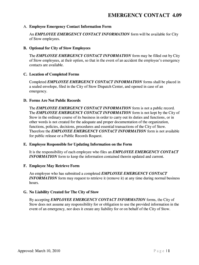 An EMPLOYEE EMERGENCY CONTACT INFORMATION form will be available for City