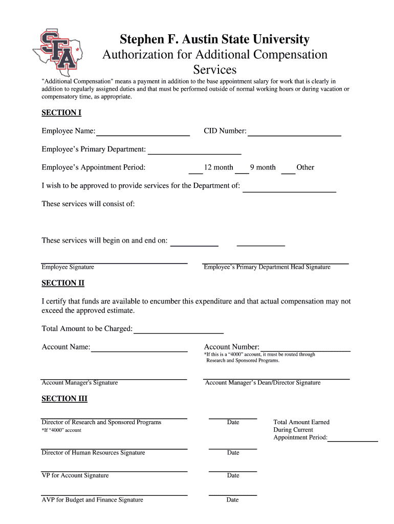 Get the free Additional Compensation Requesta - www2 sfasu