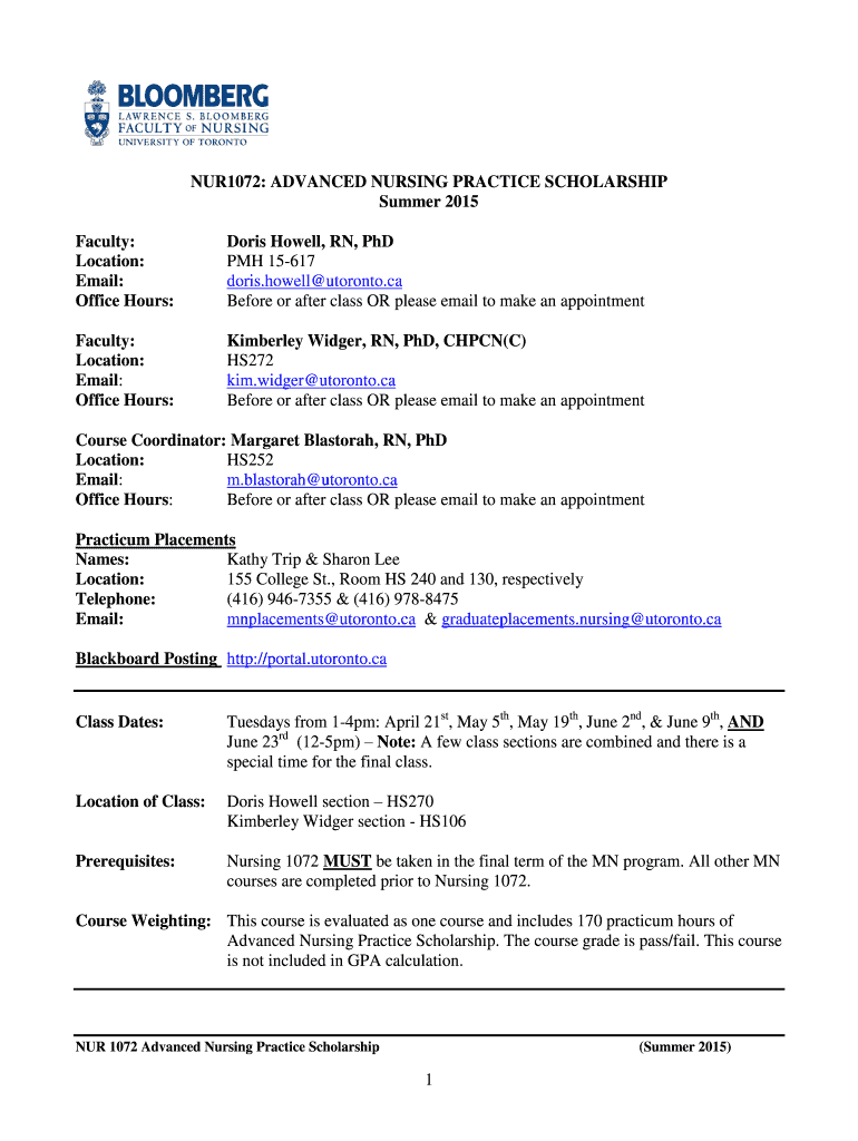 Get the free NUR1072 Syllabus 2015 - Lawrence S Bloomberg Faculty of Nursing
