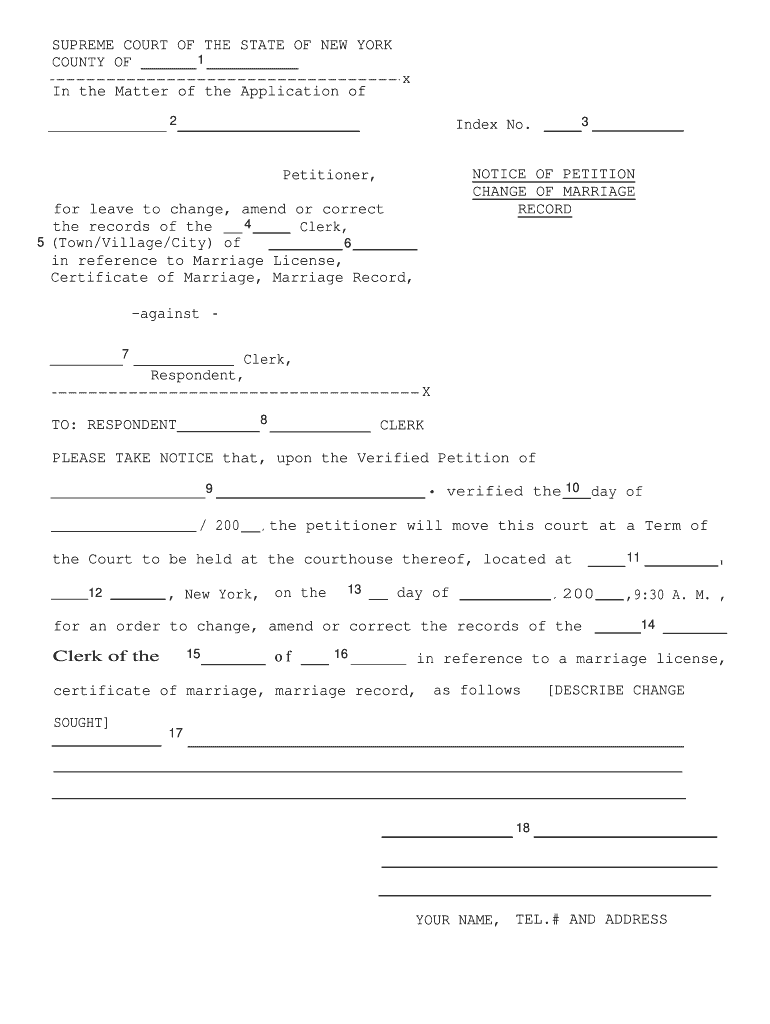 Get the free NOTICE OF PETITION CHANGE OF MARRIAGE RECORD - nycourts