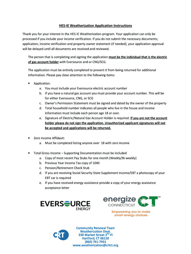 Get the free HES-IE Weatherization Application Instructions - crtct