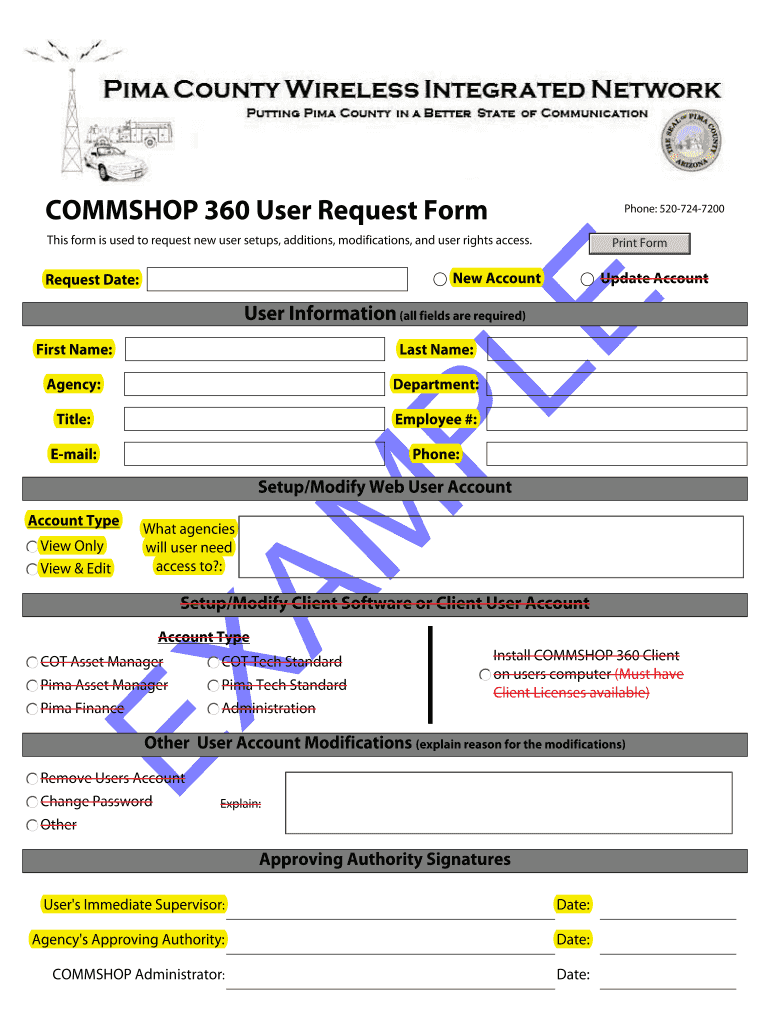 Get the free COMMSHOP 360 User Request Form - Pima County