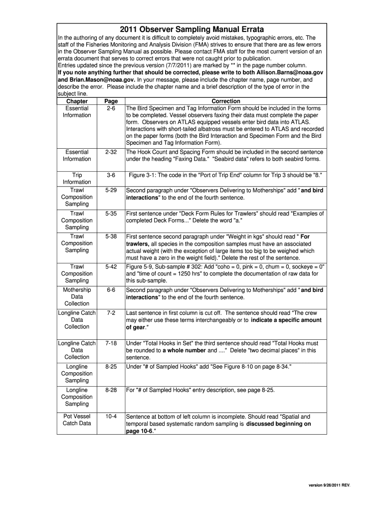 Get the free Observer Sampling Manual Errata - afsc noaa