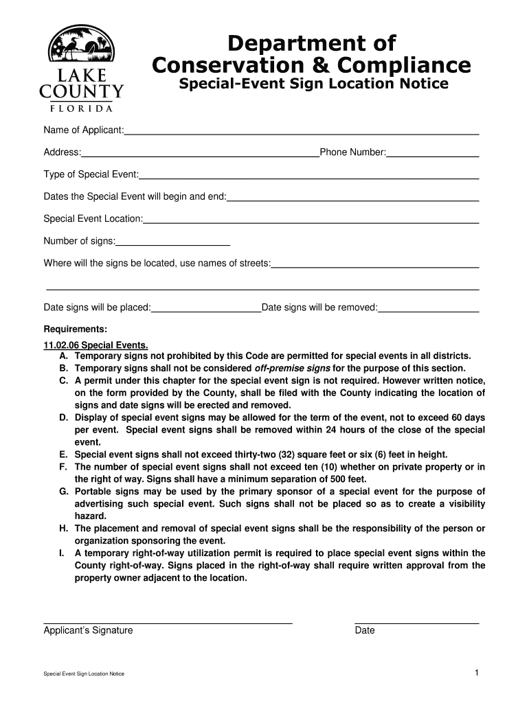 Get the free Special Event Sign Location Notice
