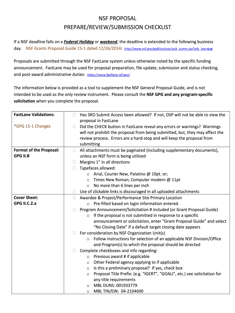 PREPARE/REVIEW/SUBMISSION CHECKLIST