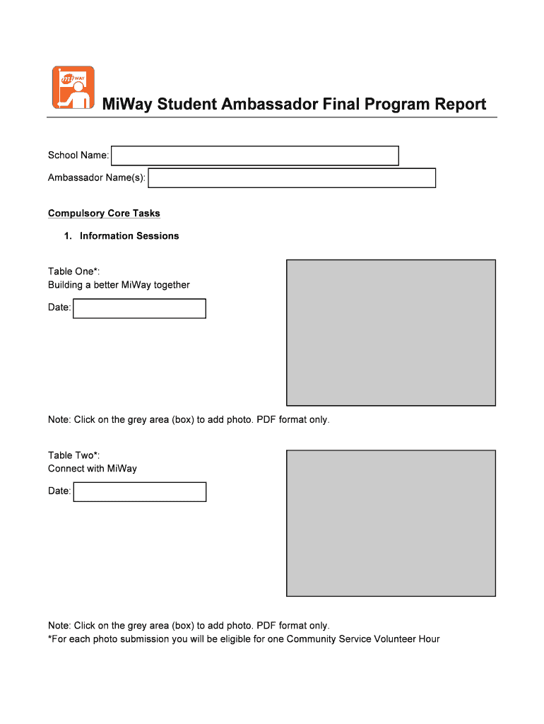 Midway Student Ambassador Final Program Report School Name: Ambassador Name(s): Compulsory Core Tasks 1. Information Sessions Table One*: Building a better Midway together Date: Note: Click on the