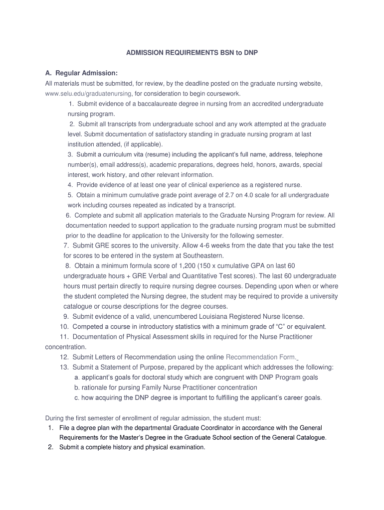 Email, fax, or share your bsn to dnp admissionsform form via URL. You can also download, print, or export forms to your preferred cloud storage service.